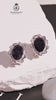 These exquisite earrings showcase a mesmerizing dark stone with subtle sparkling flecks, reminiscent of a starry night sky, beautifully cut in an oval shape for added brilliance. The unique silver floral-inspired frame, accented with tiny shimmering stones, enhances their charm with a delicate yet bold design.